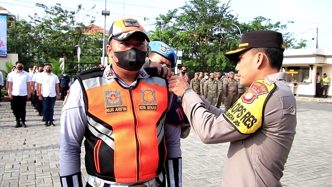Bertindak sebagai komandan apel Kanit Turjawali Satlantas Polres Metro Jakarta Timur AKP Ganda Siburian dengan peserta apel dari unsur 3 Pilar sebanyak 100 Personil yang terdiri dari Polres Metro Bekasi Kota, Kodim 0507/Bekasi, Subdenpomdan Kota Bekasi, Satpol PP dan Dishub Kota Bekasi yang dilaksanakan di halaman Mapolres Metro Bekasi Kota jalan Pangeran Jayakarta No 28, Harapan Mulya, Medan Satria Kota Bekasi, Selasa (7/2/2023).
