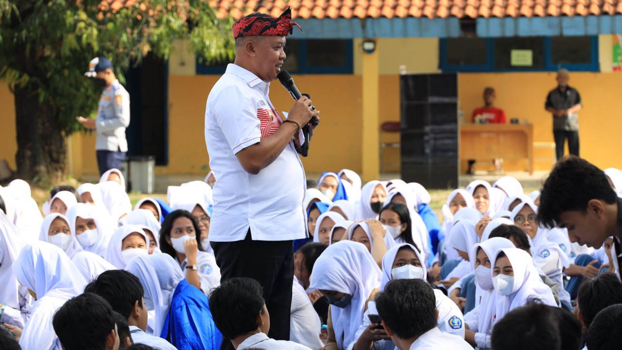 SALIRA TV KOTA BEKASI – Plt. Wali Kota Bekasi, Tri Adhianto kunjungi berbagai SMP/SMA/SMK se- Kota Bekasi untuk sosialisasi atau berbagi ilmu mengenai Wawasan Kebangsaan. Kegiatan ini sudah menjadi kegiatan rutin setiap minggunya, kali ini Tri Adhianto berkesempatan mengunjungi sekolah di wilayah Kecamatan Jatiasih, yakni SMA Negeri 21 dan SMAS Tulus Bhakti pada Rabu, (15/02)