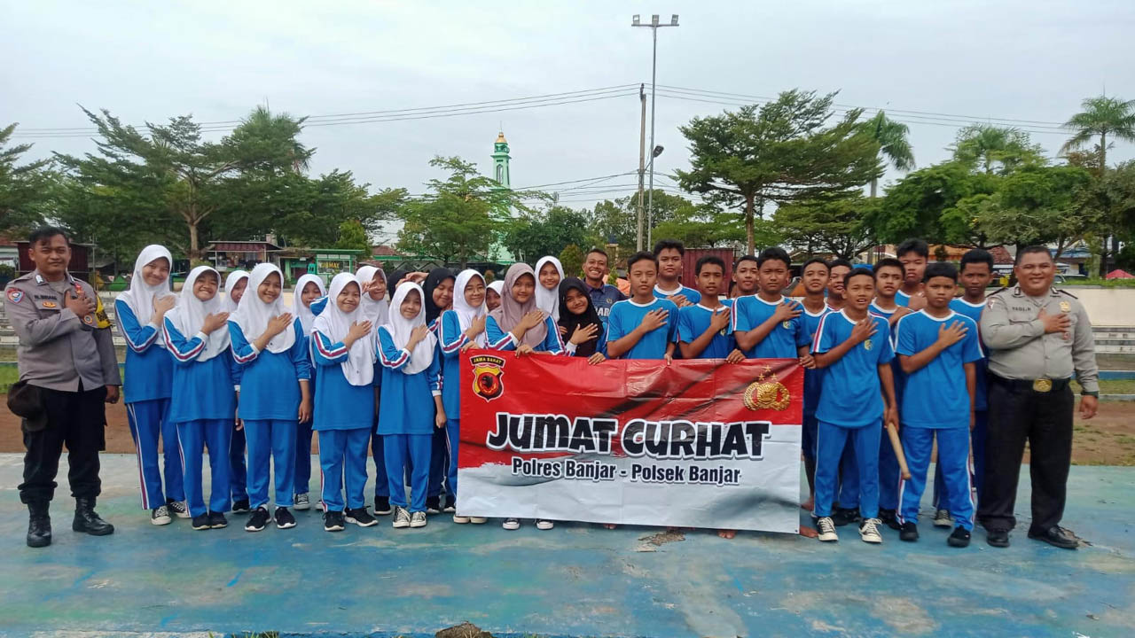 Bertempat di Taman Lapang Bhakti Link. Cibulan, Kel. Banjar Kota Banjar, Kapolsek Banjar Kompol Sudi Hartono, S.Sos. melalui Aipda Yadi Hertriyadi,S,Sos, dan Bhabinkamtibmas Kel. Banjar Bripka Riyan Bramandita, menghampiri para Siswa- siswi dan Guru pengasuh MTS N 1 Banjar di sela pembelajaran Praktik Olahraga,