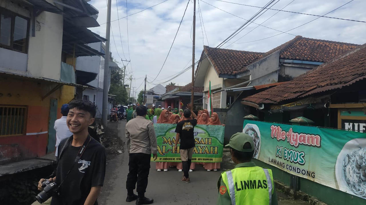 Kegiatan Pawai Imtihan Madrasah Al Hidayah diikuti sekitar 250 pesrta yang terdiri dari anak anak dan para orang tua. Kordinator pengamanan Lurah Setianegara dibantu beberapa anggita Linmas.