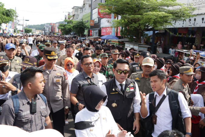 SALIRA TV KOTA BANJAR – Polres Banjar Polda Jabar – Kapolres Banjar AKBP Bayu Catur Prabowo; S.H.,S.I.K.,M.M. mendampingi Gubernur Jawa Barat Dr. (H.C.) H. Mochamad Ridwan Kamil, S.T., M.U.D. Dalam acara Helaran Seni yang diikuti oleh warga masyarakat, penggiat seni, komunitas masyarakat, serta perwakilan Kelurahan dan Desa se-Kota Banjar di Jalan Letjeng Suwato Kota Banjar. (22/02/2023)
