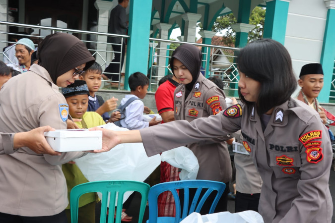 Dalam kesempatan itu, Kapolres Kuningan, AKBP Dhany Aryanda melalui Kasat Bimas AKP Budi Hartono yang didampingi Kapolsek Garawangi Iptu Deden bersama Polwan dan Bhabinkamtibmas membagikan nasi kotak kepada jemaah setelah melaksanakan sholat jumat.
