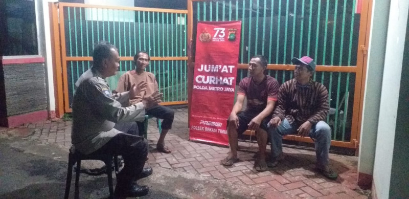 Jumat Curhat dengan moto Mencatat, Mendengar dan Mencari Solusi, petugas Polsek Bekasi Timur juga menghimbau kepada warganya untuk berpartisipasi dalam menjaga kondisi Kamtibmas yang kondusif.
