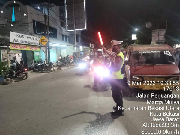 SALIRA TV KOTA BEKASI – Sebagai wujud kehadiran Polri ditengah masyarakat, Unit lantas Polsek Bekasi utara gelar kegiatan Pengaturan lalu lintas, selain melaksanakan tugas pengaturan lalu lintas dari sore hingga malam hari, personel Sat Lantas Polsek Bekasi Utara juga memberikan himbauan tertib berlalu lintas, Kamis (9/3/2023).