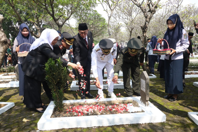 Saat tabur bunga, Tri ajak para Kapolres, Dandim, Ketua Pengadilan, Kepala Kejaksaan untuk bersama menaburkan bunga kepada para pahlawan yang telah tiada agar kita tetap bersyukur atas perjuangan mereka.