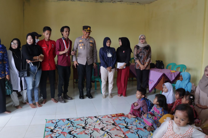 Setelah berdiskusi, Kapolres bersama GMNI secara door to door menghampiri para kamu jompo dan anak-anak dengan memberikan sembako bagi jompo dan makanan penambah gizi bagi anak balita.