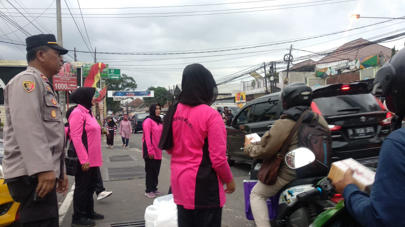 SALIRA TV KOTA TASIKMALAYA – Taskot – Jajaran Kepolisian Polsek Mangkubumi, Polres Tasikmalaya Kota bersama Bayangkari Polsek Mangkubumi membagikan