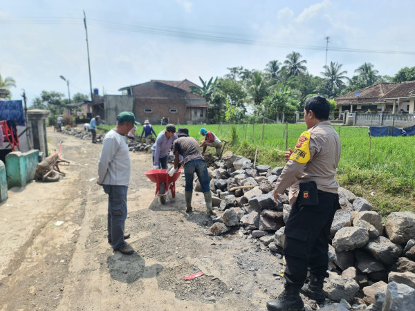 Bhabinkamtibmas Sukajadi Bersama Kades Monitoring Pembangunan Irigasi Kampung Mekarsari