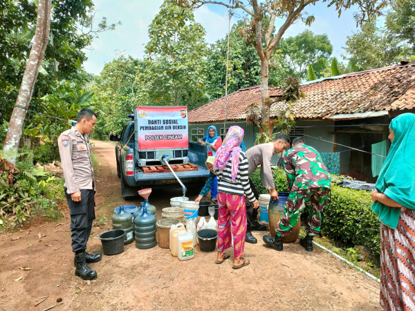 Oleh karenanya, personel Polsek Cineam rutin melakukan pendistribusian air bersih ke warga-warga yang membutuhkan, salah satunya di Kp.Neglasari RT 028 RW 005, Desa Cijulang, Kecamatan Cineam.