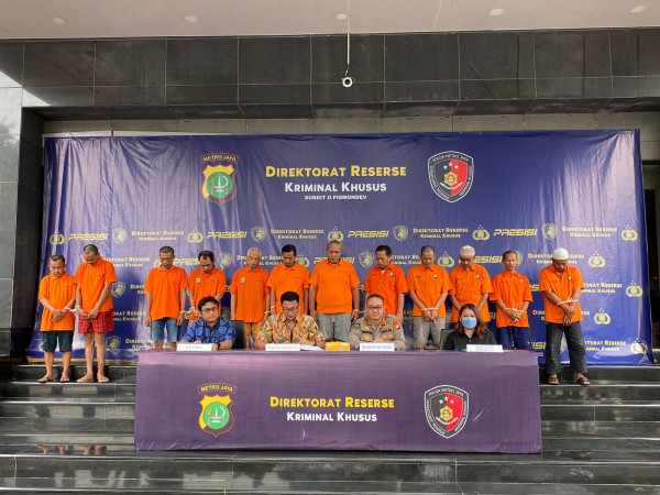 Dirreskrimsus Polda Metro Jaya Kombes Pol Auliansyah Lubis menyampaikan 8 tersangka ditangkap di TKP 1 berinisial MZ, ASA, RDP, AS, IR, Y alias G, M alias Y dan AGS. Sedangkan di TKP 2 ditangkap 4 tersangka berinisial RW, R, MS dan A.