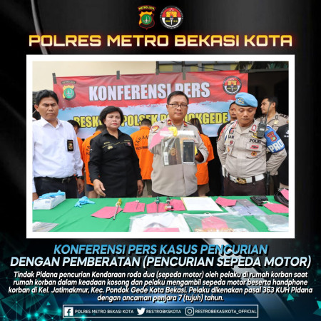 Pelaku AB diamankan unit reskrim Polsek Pondokgede setelah korban melaporkan kejadian pencurian dirumahnya berdasarkan Laporan Polisi Nomor LP/424/V/2023/SPKT/Sek Pondokgede/Restro Bekasi Kota tanggal 16 Mei 2023.
