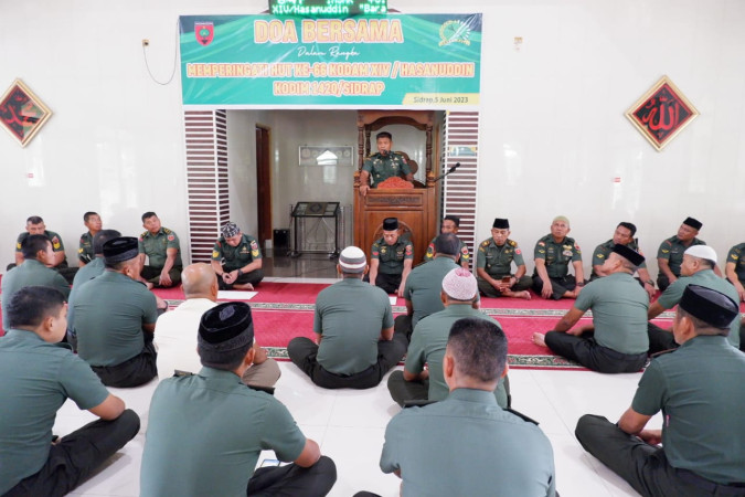 Dalam sambutannya Kasdim 1420/Sidrap Rem 141/TP Mayor Arm Ari Widarto menyampaikan “Dalam rangka HUT ke-66 Kodam XIV/Hasanuddin tahun 2023, kita semua berkumpul di masjid Al Ikhsan Kodim 1420/Sidrap bersama-sama melaksanakan doa bersama untuk senantiasa diberikan perlindungan kesehatan, keselamatan dan kekuatan serta kesuksesan dalam setiap pelaksanaan tugas,” Kata Kasdim