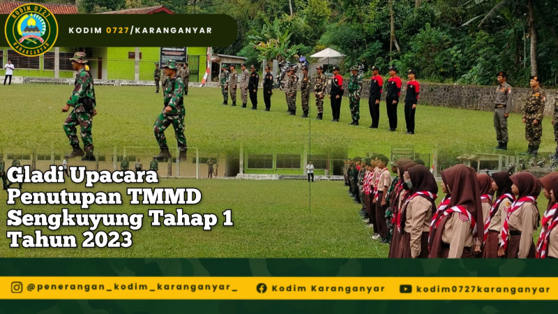 SALIRA TV KABUPATEN KARANGANYAR – Guna memastikan kesiapan upacara penutupan TMMD Sengkuyung Tahap 1 tahun 2023, personel Kodim 0727/Karanganyar melaksanakan gladi upacara di lapangan desa Girilayu kecamatan Matesih, kabupaten Karanganyar dengan tema “Sinergitas Lintas Sektoral Mewujudkan Kemanunggalan TNI Rakyat Semakin Kuat”, Rabu 07 Juni 2023.