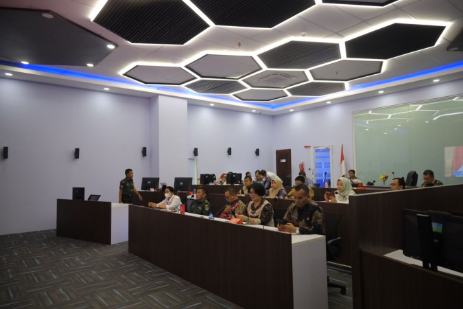 Tri beserta jajaran Pemerintah Kota Bekasi mengikuti zoom di Command Center Kota Bekasi.