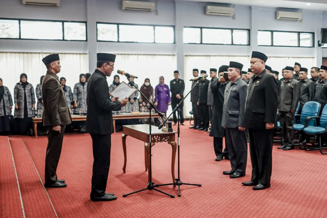 SALIRA TV KABUPATEN CIAMIS – Ciamis, – Bupati Ciamis, Dr. H. Herdiat Sunarya melantik dan mengambil sumpah 2 Pejabat Jabatan Pimpinan Tinggi Pratama (JPTP), yakni Yayan Muhamad Supyan, AP, S.Ip, MM sebagai Kepala Dinas Kependudukan dan Pencatatan Sipil Kabupaten Ciamis dan Drs. Syarief Nurhidayat, M.Si sebagai Inspektur Kabupaten Ciamis.