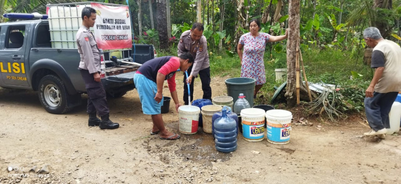 Kapolres Tasikmalaya Kota AKBP Sy Zainal Abidin,Sik melalui Kapolsek Cineam AKP Dede Darmawan,SH.MH mengatakan, warga di beberapa wilayah Kecamatan Cineam kesulitan mendapatkan air bersih untuk memenuhi kebutuhan hidup sehari harinya