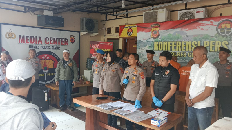“Tiga orang pelaku tindak pidana perjudian sabung ayam kami amankan. Ketiganya berinsial EL (58), AS (23), dan IJ (34). Ketiganya kami amankan dilokasi kejadian di Dusun Naggela RT 008 RW 004, Desa Sandingtaman, Kecamatan Panjalu, Kabupaten Ciamis, Jawa Barat,” ujar Kapolres Ciamis Polda Jabar AKBP Tony Prasetyo Yudhangkoro SH., S.I.K., M.T., didampingi Kasat Reskrim Iptu M Arwin Bachar, S.T.K., S.I.K., Kasi Humas Polres Ciamis Iptu Magdalena NEB dalam konferensi pers di Mako Polres Ciamis, Selasa (29/8/2023).