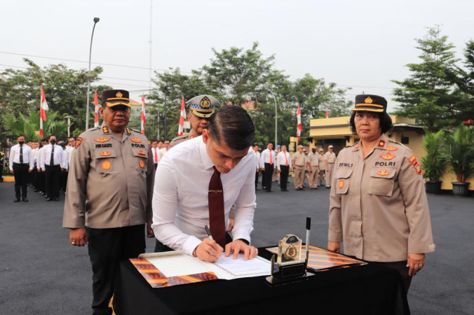 Kapolres Metro Bekasi Kota Kombes Pol Dani Hamdani S.I.K, M.P.M bertindak menjadi pimpinan kegiatan penandatanganan komitmen bersama lingkungan terjaga Polres Metro Bekasi Kota yang dilaksanakan di Mapolres Metro Bekasi Kota pada Senin (28/8/2023).