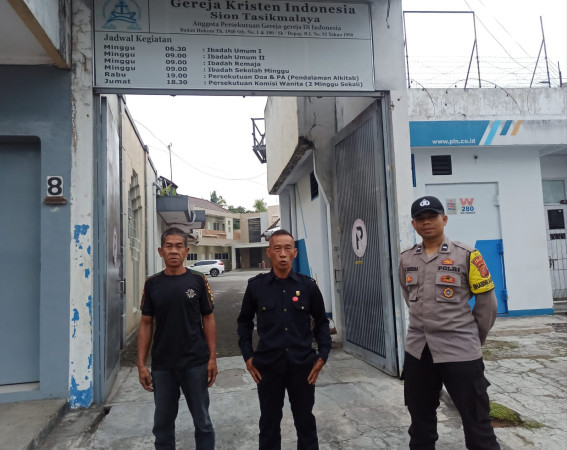 SALIRA TV KOTA TASIKMALAYA – POLRES TASIK KOTA — Kapolsek Cihideung AKP Erustiana,S.Ag beserta anggota melaksanakan kegiatan pengecekan Gereja yang ada di wilayah polsek cihideung dalam rangka ibadah rutin mingguan, yakni gereja: