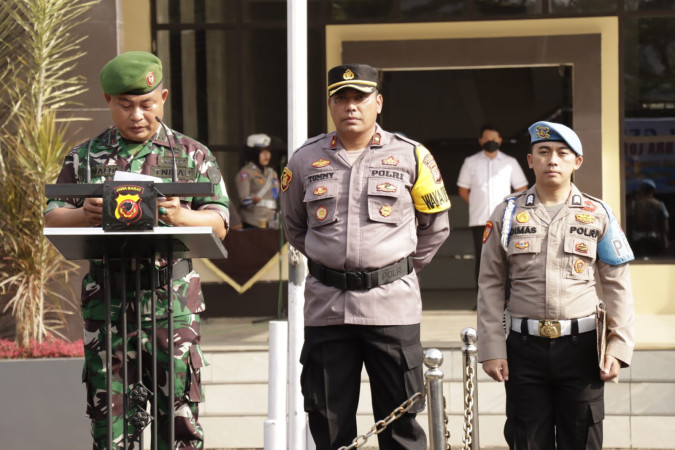 Dalam apel tersebut bertindak sebagai pimpinan apel Waka Polres Banjar didampingi Danramil 1313/Banjar Mayor Inf M Junaedi.