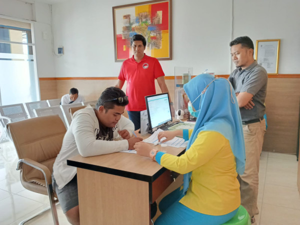 Dengan berjalan tertib, masing – masing peserta tes urine memberikan urine mereka diwadah yang disiapkan dari Permata Lab yang kemudian petugas Permata Lab melakuan tes dengan alat pengecekan dari masing – masing sample urine dan langsung diketahui hasilnya.