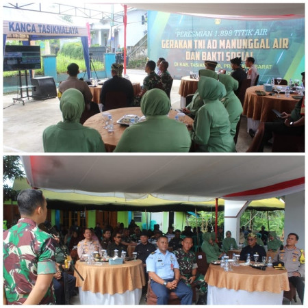 Sambutan Dandim 0612/Tasikmalaya (Letkol Inf Raden Henra Sukmadjidibrata, S.I.P.) intinya : banyak program di luar anggaran Angakatan Darat termasuk pengadaan Air bersih, misi kemanusian tentara luar banyak meniru program TNI untuk memenangkan hati Rakyat, TNI Polri sering melaksanakan Bakti sosial karena kesejahteraan Rakyat salah satu pilar pertahanan Negara, apabila Kebutuhan dan kesejahtraan Masyarakat terpenuhi maka Negara akan aman, Kami TNI Polri dan pemerintah dalam Pemilu netral apabila ada intimidasi silahkan laporkan, Gunakan hak pilih dengan baik sesuai hati nurani, Provokasi dan intimidasi banyak dilakukan di media sosial harus pandai membaca berita, Wujudkan situasi yang kondusif jangan bersengketa gara gara Pemilu, Air ini yang membangun adalah pemerintah kami hanya melaksanakan program, Di tahun ini ada berapa titik akan kita bantu, Kita siap mengamankan Pemilu ini apabila ingin mengekspresikan pilihannya silahkan.