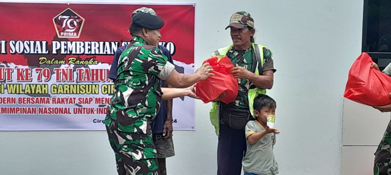 SALIRA TV KOTA CIREBON – Dalam rangka memperingati Hari Ulang Tahun (HUT) Tentara Nasional Indonesia (TNI) ke- 79, Subkogartap 0614/Crb menggelar rangkaian kegiatan Bakti sosial (Baksos) pembagian sembako di Markas Komando Subkogartap 0614 Kecamatan Lemahwungkuk Kota Cirebon. Senin, (23/9/24).