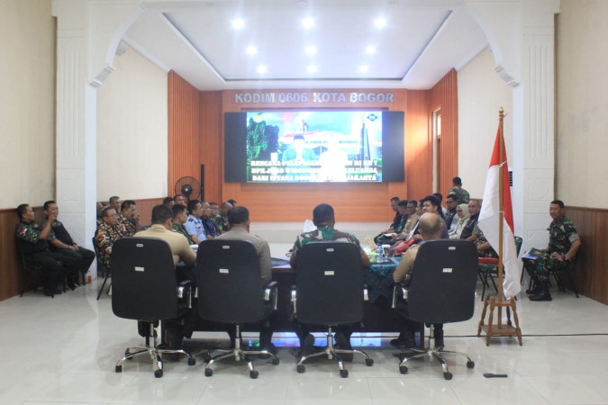 SALIRA TV KOTA BOGOR – Rapat koordinasi terkait pelepasan Presiden RI Ke 7 beserta keluarga dari Istana Bogor menuju Jakarta digelar di Aula Makodim 0606/KB, Jl. Jenderal Sudirman, Bogor. Acara yang dimulai pukul 09.00 WIB ini dipimpin oleh Letkol Inf Dwi Agung Prihanto, Dandim 0606/KB, yang dihadiri oleh 35 perwakilan dari berbagai instansi dan lembaga terkait, Senin (14/10/2024).
