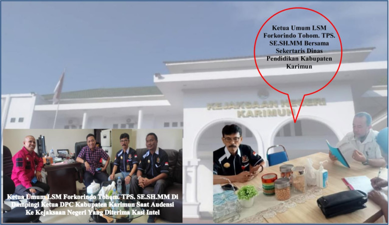 Tegas ketua DPC LSM Forkorindo Edward Simanjuntak mengatakan Kami melakukan klarifikasi atau konfirmasi sesuai dengan data yang tim miliki dari penyerapan anggaran yang sudah dipergunakan dengan pembayaran terlaksana, dalam hal ini kami sebagai sosial kontrol yang sudah melakukan konfirmasi langsung, dalam kesempatan itu juga ketua DPC yang di dampingi ketua Umum LSM Forkorindo Dari Jakarta melakukan Audensi tentang surat klarifikasi tersebut yang sampai berita ini di turunkan belum ada jawaban dalam hal itu melakukan pertemuan dengan pihak Kejaksaan Negeri Kabupaten Karimun saat itu di terima Kasi Intel dan sangat merespon atas penjelasan dari Ketua Umum LSM Forkorindo Tohom TPS., SE., SH., MM., tentang adanya Dugaan Penggunaan Anggaran yang tidak sesuai dengan fakta dilapangan.