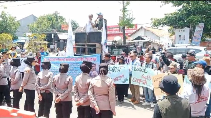 Koordinator aksi, Urip Triandi mempertanyakan pernyataan Lucky Hakim yang menilai jurnalis di Indramayu tidak waras.