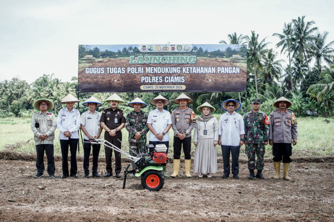 Sebagai bagian dari kegiatan ini, Kapolres Ciamis beserta jajaran Forkopimda secara simbolis melakukan penanaman jagung yang menjadi salah satu komoditas strategis dalam mendukung ketahanan pangan di wilayah Kabupaten Ciamis.