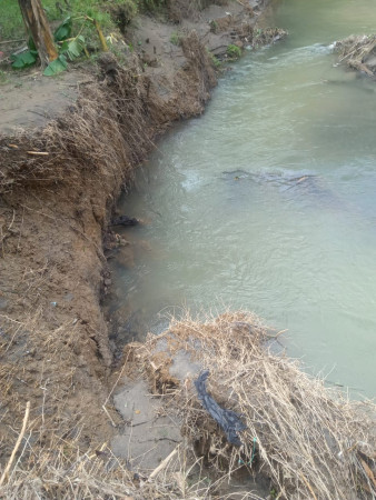 Bahkan banyak pepohonan yg ikut tumbang, seperti pohon bambu juga ikut terbongkar sampai ke akar akarnya, sehingga air semakin meluas hingga beberapa meter lagi mencapai rumah warga.