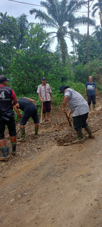 Yang Langsung memerintahkan segenap jajaran Perangkat Desa dan warga, untuk bahu membahu memperbaiki jalan yang rusak,