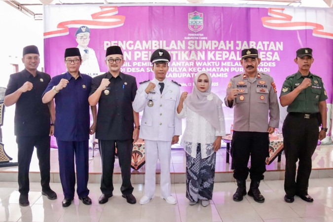 SALIRA TV KABUPATEN CIAMIS – Pj Bupati Ciamis, Budi Waluya, resmi melantik dan mengambil sumpah jabatan Kepala Desa Hasil Pemilihan Antar Waktu (PAW) di Desa Sukamulya, Kecamatan Purwadadi, pada Kamis (13/02).