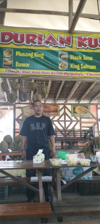 “Alhamdulillah, hari ini ramai sekali. Banyak yang mampir untuk beli durian. Ada yang dari arah Bandung, ada juga yang dari Jawa Tengah,” ujar H. Wahyu,pemilik kedai durian Kujang, kepada awak media.