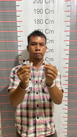 Setibanya di tempat kejadian, petugas mendapati seorang pria sedang dalam posisi mengonsumsi zat yang diduga sabu-sabu. Petugas langsung melakukan penangkapan terhadap pria tersebut dan mengamankan barang bukti di sekitar lokasi.