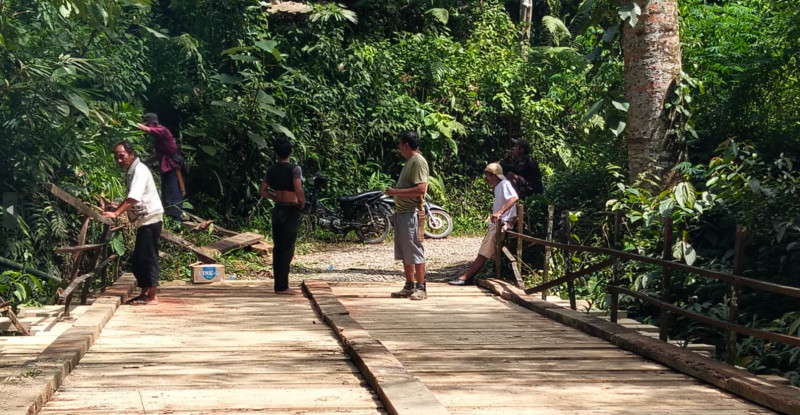 Pantauan langsung tim media di lokasi menunjukkan bahwa bantalan jembatan yang terbuat dari papan kayu telah banyak mengalami pelapukan dan keropos. Meski masih dapat dilewati, kondisi tersebut menimbulkan kekhawatiran tersendiri, terlebih bagi warga yang kerap melintas membawa hasil pertanian dan perkebunan menggunakan kendaraan bermuatan berat seperti truk.
