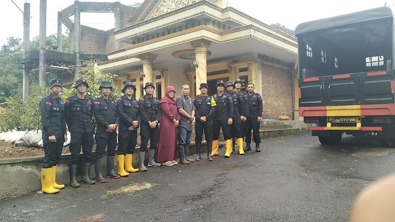 SALIRA TV | KAB. CIAMIS – Hujan deras yang mengguyur wilayah Cantigi, Desa Kujang, Kecamatan Cikoneng, Kabupaten Ciamis, pada Selasa (29/07/2025) tidak mampu mematahkan semangat kemanusiaan anggota Kompi 4 Batalyon D Pelopor Satuan Brimob Polda Jabar. Bersama H. Wahyu, pengusaha sukses yang akrab dijuluki Bos Durian Kujang, mereka melaksanakan kegiatan bakti sosial berupa ikut serta gotong royong di pembangunan pondasi rumah milik Mak Unamah di RT 06/RW 14.